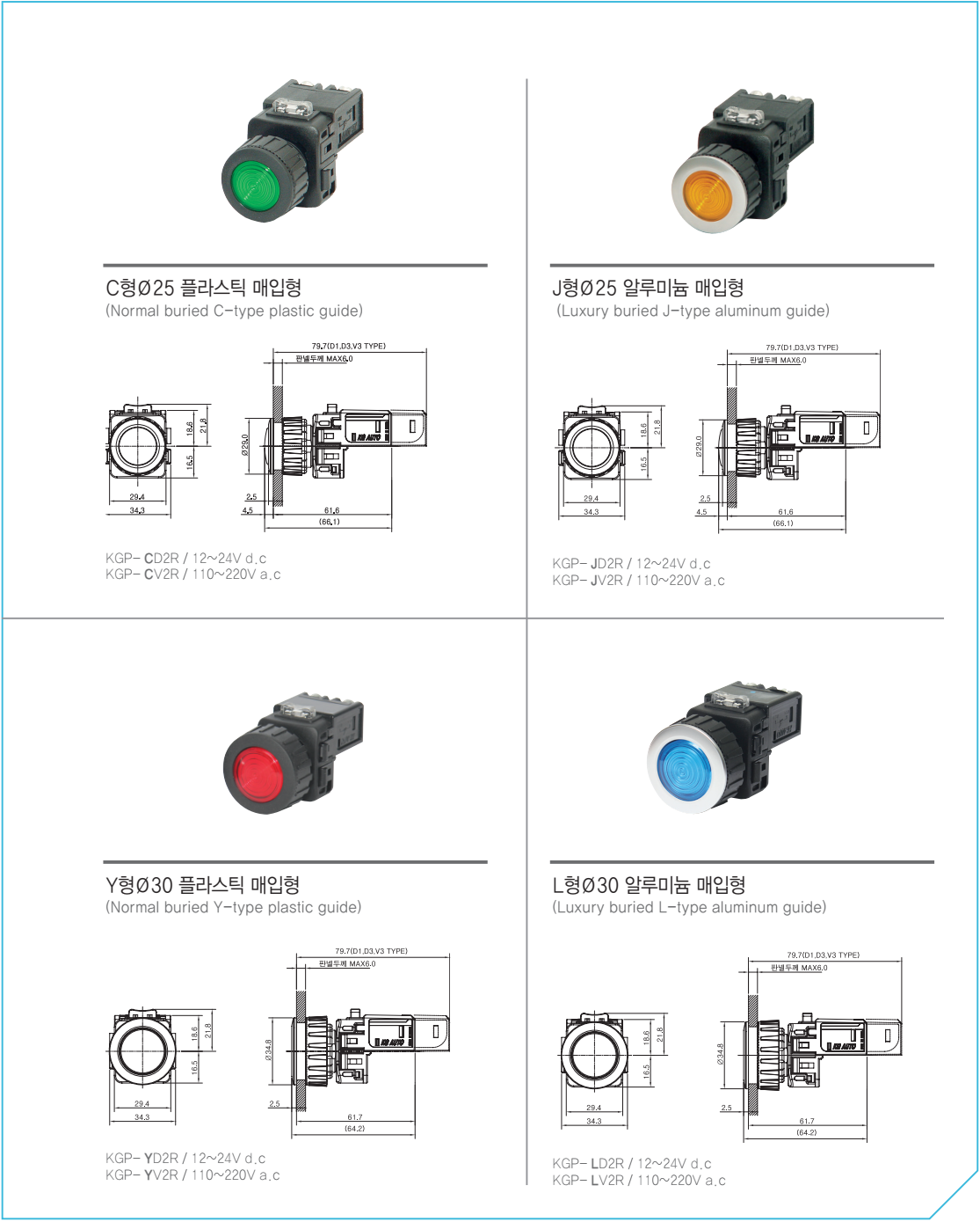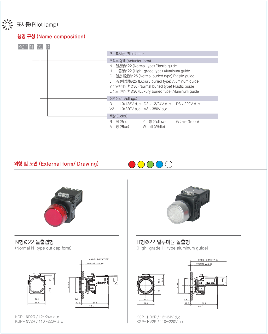 Pilot lamp ( KGP SERIAL) Ø22, 25, 30 KGP- ND2, KGP- NV2, KGP- HD2, KGP- HV2, KGP- CD2, KGP- CV2, KGP- JD2, KGP- JV2, KGP- YD2, KGP- YV2R, KGP- LD2,…
